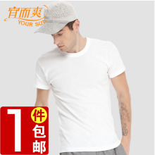 2件装宜而爽男士纯棉细罗纹全棉吸汗透气短袖汗衫半袖背心圆领T恤