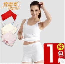 3条装 宜而爽女纯棉中高腰平角裤内裤全棉安全平口裤本命年四角裤