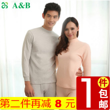 AB纯棉三层保暖情侣棉毛衫裤男女圆领内衣套装纯棉加棉加厚冬9816