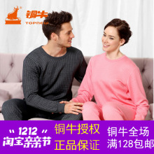 铜牛内衣男女三层保暖棉圆领套装加厚夹棉情侣0712-5379/9088纯棉