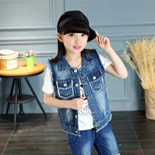 女童牛仔马甲外套2017春秋中大儿童女孩百搭无袖宝宝牛仔背心马甲
