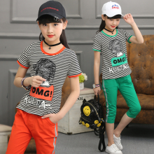 女童夏季短袖套装儿童韩版纯棉休闲七分裤运动套中大童女孩两件套