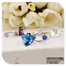 三角形通透奥地利水晶C杆钛钢耳钉香巴拉满钻圆球钛钢耳环饰品