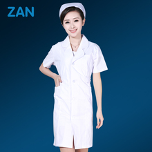 白大褂护士服短袖夏装女修身娃娃领对襟实验服药店美容院工作服