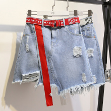 2017春夏新款韩版高腰毛边牛仔裙半身裙女显瘦破洞不规则包臀裙
