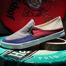 热闹客春季男士低帮套脚不系带帆布鞋拼色潮男鞋子休闲一脚蹬懒人