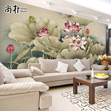 定制电视背景墙壁纸 大型壁画中式客厅卧室影视墙纸布3d立体 荷花
