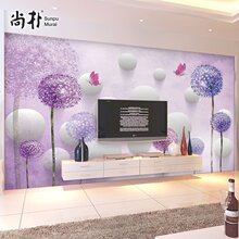 电视背景墙壁纸 定制大型壁画现代简约客厅卧室3d墙纸布 蒲公英