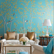 定制现代花鸟树墙纸卧室壁纸客厅背景墙电视背景墙沙发墙壁画无缝