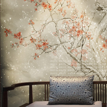 定制墙纸壁纸壁画卧室客厅电视背景无纺中式梅花玄关壁纸特价无缝