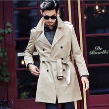 中长款风衣男2017春秋新款英伦修身腰带双排扣长袖外套大码NO.925