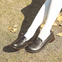 2016春款复古文艺范低帮鞋布洛克真皮女鞋休闲百搭粗跟单鞋皮鞋