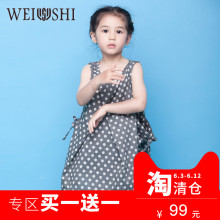 韦氏夏季女童圆点连衣裙女孩裙子宝宝中大童公主裙纯棉薄款中长款
