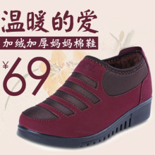 冬季加厚加绒保暖居家妈妈鞋老北京布鞋女棉鞋中老年平底防滑棉鞋