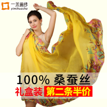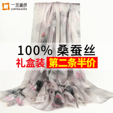 一米画纱轻薄 真丝丝巾女 夏季围巾披肩 两用超长纱巾高档桑蚕丝