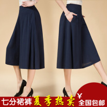宽松阔腿裤七分裤2017新款夏季裙裤棉麻休闲裤高腰大码裤裙阔脚裤