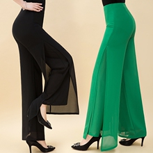 夏款韩版高腰雪纺长裤开叉喇叭裤双层阔腿裤女裙裤甩裤休闲沙滩裤