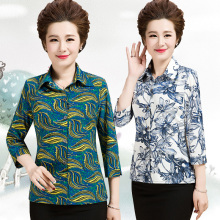 新款中老年女装七分袖衬衫妈妈装开衫上衣老人大码T恤衬衣女夏