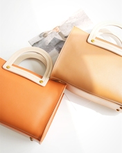 【CHUSE】新款街拍 欧美风 时髦夏日撞色 蝙蝠包真皮牛皮手提女包