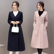 胖mm秋装连衣裙2017新款韩版大码女装显瘦纯色长款大衣毛呢外套潮