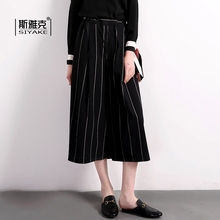 竖条纹阔腿裤女夏季薄款高腰宽松黑色2017新款春裙裤港味九分裤潮