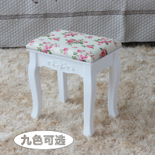 欧式田园梳妆台凳换鞋凳象牙白色化妆台凳子法式实木软包坐凳包邮
