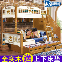 全实木高低床子母床双层床上下铺组合床梯柜储物床儿童床套房家具