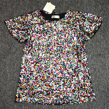 夏装新款韩版夜店五彩亮片宽松飞袖短袖T恤女上衣bling闪片表演服