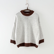 秋冬学院 森女文艺纯色宽松百搭拼接小清新学生套头内搭毛衣韩版