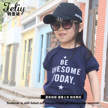 【特里依】童装2017夏季新款韩版短袖女童T恤可爱圆领纯色字母印