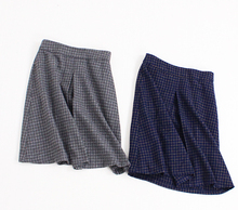 B091307 日单精品 三色入 优雅气质小格纹松紧腰设计感毛呢半身裙