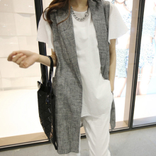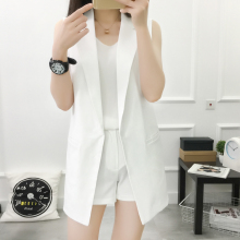 女装春夏季新款坎肩中长款纯色马甲韩版宽松西装领职业装马夹外套