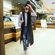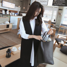春秋新女装大码西装马甲中长款显瘦韩国黑色坎肩无袖马夹学生外套