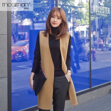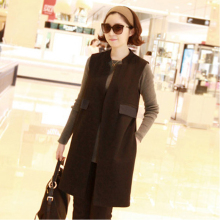 春季新款韩版马甲女中长款无扣坎肩背心宽松无领呢子马甲加厚马夹