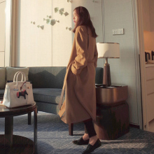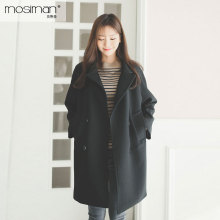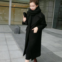 冬新韩版西装领长款毛呢大衣宽松时尚女士外套时尚