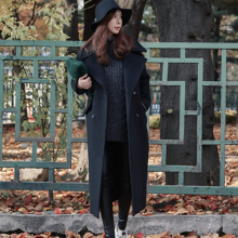 冬季新款韩版长款毛呢外套女双排扣修身显瘦呢子大衣女中长款上衣