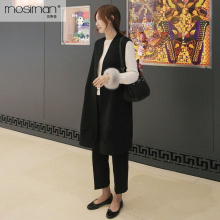 春秋新款韩版毛呢马甲女装中长款修身黑色马夹休闲坎肩黑无袖外套