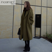 秋冬季新款韩版长袖宽松版毛呢大衣女加长款大码外套