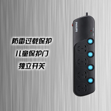 包邮飞利浦防雷插座过载保插排插4位独立开关儿童保护3米接线板