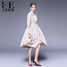 Ue.Lux上东轻奢欧洲站中长款缎面翻领收腰风衣外套UYJ875