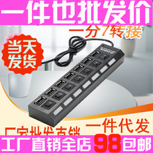 直销usb分线器转换器扩展器7口多孔usb接口高速集线器hub独立开关