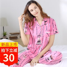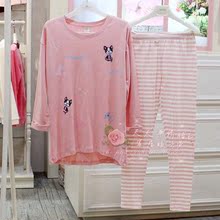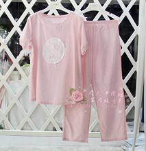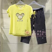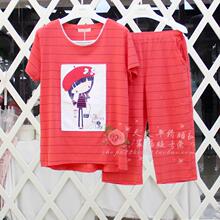 时尚安之伴2017夏季丝光爽棉女士可爱短袖七分裤睡衣家居服套正品