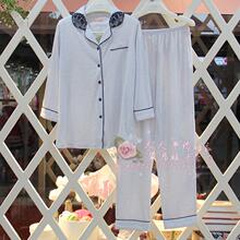 佰伦世家春秋夏季薄款针织棉质女学生中长长袖韩版家居服套装清仓