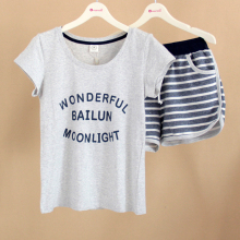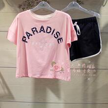 纯棉休闲运动女士短袖短裤睡衣套装2017佰伦世家夏季新款家居服潮