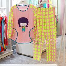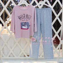 安之伴正品春秋夏季薄款纯棉可爱女人长袖长裤睡衣家居服套装清仓