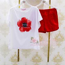 时尚甜美印花女士短袖短裤睡衣套装花丛丽影2017夏季新款家居服促