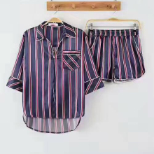 安之伴夏季新款条纹中袖短裤仿真丝绸冰丝韩版睡衣家居服女套装潮