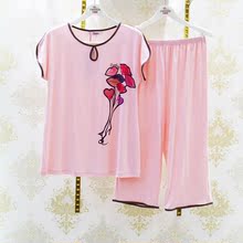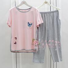 花丛丽影2017夏天薄款女士短袖中裤针织棉质中年睡衣女家居服套装