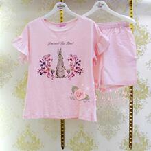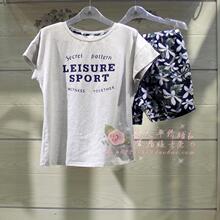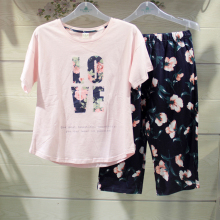 女士短袖印花七分裤睡衣时尚套装针织纯棉舒适家居服2017夏季新款