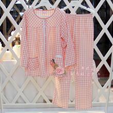 梭织棉休闲格子开衫长袖长裤睡衣2017安之伴春秋新款女士家居服套